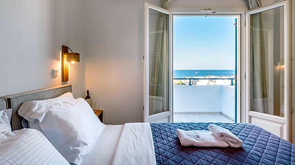 After a fun-filled day exploring the stunning volcanic landscapes and lively beaches of Perissa, retreat to the Marianna Hotel’s inviting outdoor swimming pool. Although the pool is Adults-Only and seasonal, it offers a shallow end perfect for relaxing with a refreshing drink in hand or enjoying a peaceful swim under the sun. Imagine unwinding on one of the comfy beach chairs or soaking up the beautiful views from the terrace—your perfect relaxation spot after a day of adventure.