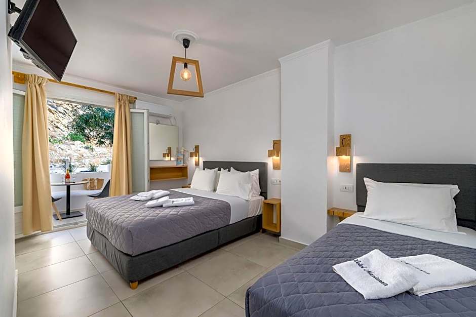 Whether you're admiring the mountain views from your balcony, enjoying a kid-friendly buffet, or simply relaxing on the beach chairs and umbrellas, Marianna Hotel has something for everyone. Unwind on the terrace, try horseback riding (extra charges), or just lounge on the patio in a peaceful setting. With its lively yet relaxing vibe, this hotel is your gateway to discovering the beauty of Perissa, starting at an affordable price of just $50 a night.